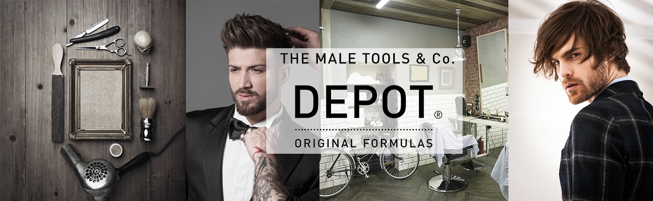 DEPOT® ͢The male tools & Co. Per l’uomo contemporaneo più attento, riprende le formule originali dei primi gesti di cura personale maschile, reinterpretate in chiave moderna e sofisticata con tecnologie all’avanguardia. DEPOT® offre una gamma completa di prodotti da uomo per rispondere alle richieste di un mercato maschile in evoluzione, plasmata su misura per i loro bisogni. . Prodotti specifici di qualità con una forte identità.